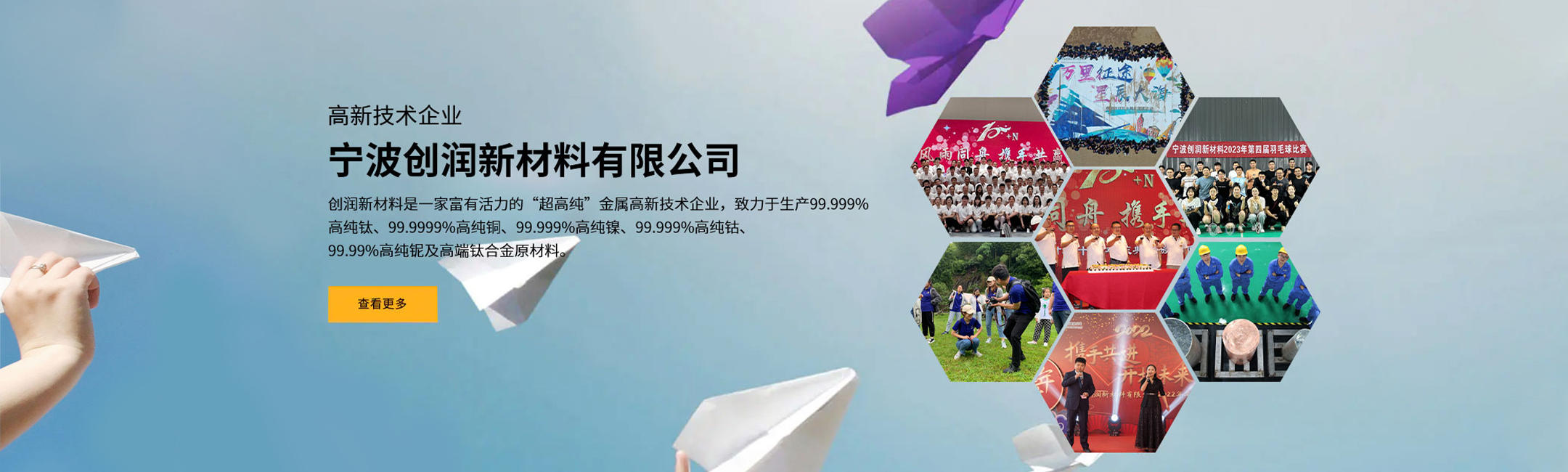 創(chuàng)潤(rùn)新材料是一家富有活力的“超高純”金屬高新技術(shù)企業(yè),致力于生產(chǎn)超高純金屬原材料。產(chǎn)品涉及半導(dǎo)體靶材,航空發(fā)動(dòng)機(jī),生物醫(yī)療用高純金屬, 軍工用特殊性能材料等。是國(guó)內(nèi)唯一的超高純鈦金屬產(chǎn)業(yè)生產(chǎn)基地,使中國(guó)躋身為世界上僅有的三個(gè)擁有該技術(shù)和產(chǎn)線的國(guó)家之一。經(jīng)過多年的市場(chǎng)開拓與客戶驗(yàn)證,創(chuàng)潤(rùn)逐步形成了超高純鈦、銅、鎳、鈷、鈮及高端鈦合金產(chǎn)品體系。